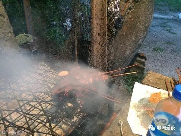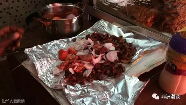 在这里说说尼日利亚的几种食物,味道还是不错的,一个是SUYA,这是一种烤肉,用当地的调料腌制过后牛羊肉片(也有鸡胗、肝脏和腰子等)或者鸡在炭火上烧烤,熟了以后去下竹签,切成小块,加上生洋葱和西红柿用牙签插着吃,味道很是不错,但制作过程最好不看,普遍很脏。还有一种叫SHAWAMA的饼卷肉,有鸡肉和牛肉两种,加上一些菜和调料,有些像土耳其烤肉,但味道不大一样。还有一种红色的饮料CHAPMAN,是由七喜芬达橙汁和其他一些调料调制而成,最后加入一片黄瓜,确实好喝!一顿饭下来我们两个人吃了两万多奈拉(一千人民币左右),其实在尼日利亚这样的消费并不算高,但是头一次也足以让我惊奇了,我天真的觉得这里人民生活水平还是可以的吗!