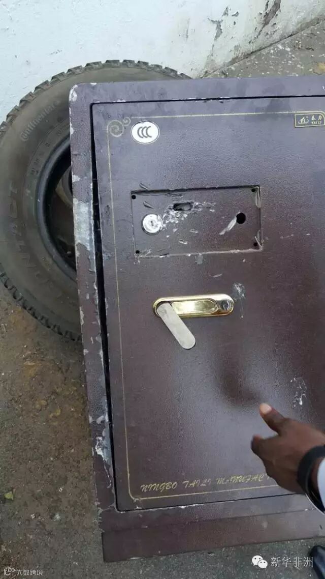 哈拉雷警方追回中资企业被抢的保险箱。(王新举摄)