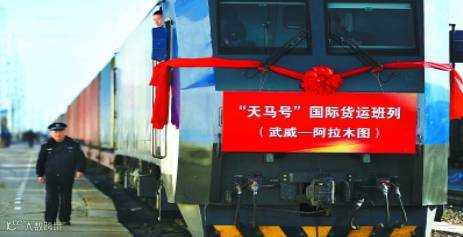 2016年5月11日,“天马号”中欧国际货运班列满载吸尘器、机械设备、日用百货等货物从武威南出发,这批货物将通过阿拉山口境运输至哈萨克斯坦等中亚国家,历时5天到达目的地。