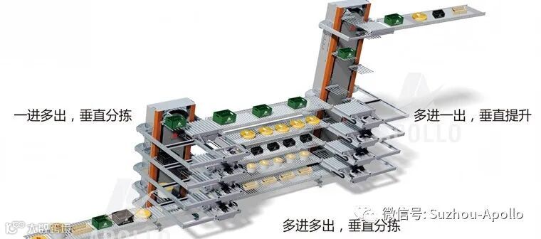 可实现10进10出的垂直提升及分拣,设备最高可以达到35m。