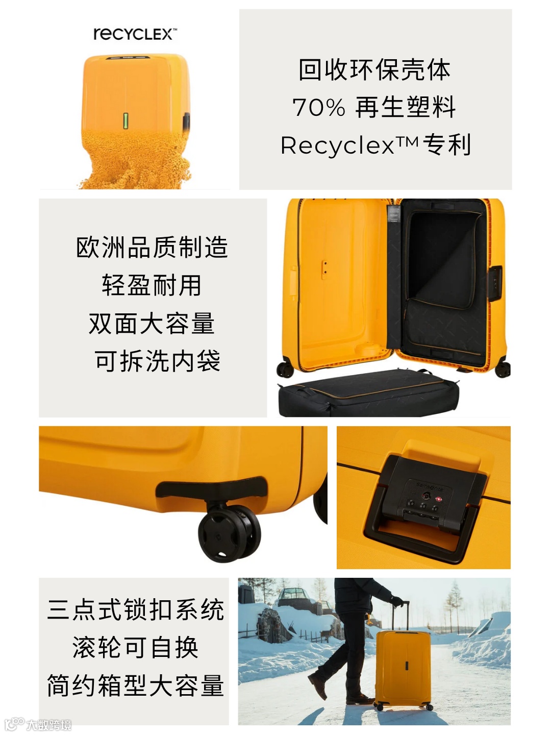 新秀丽里最实惠的环保选手,性价比超高。适合家庭出行、长途打包派。