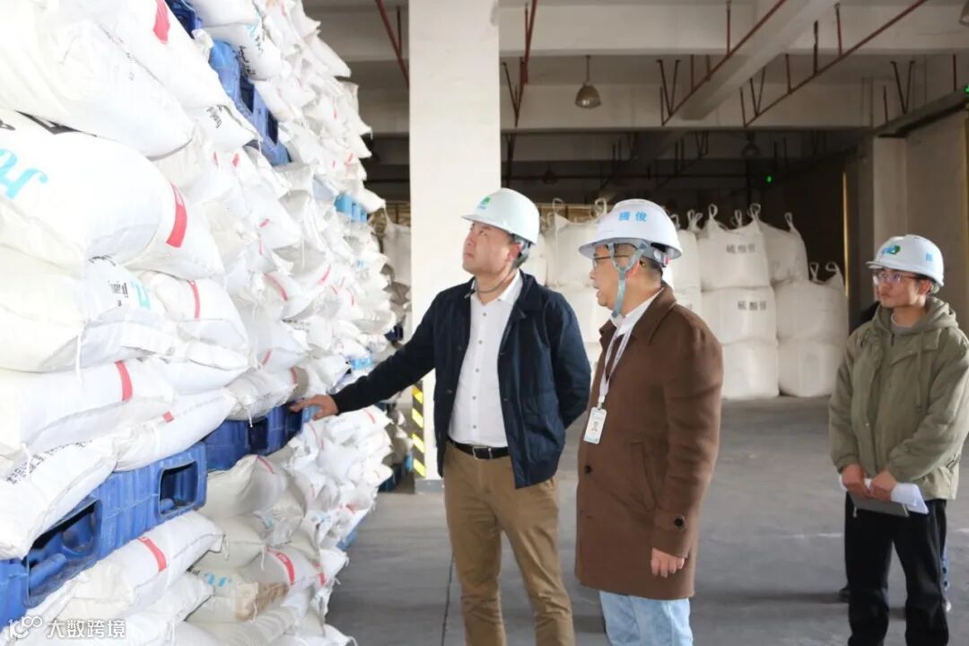 调研团首先来到腾俊国际陆港智能仓储中心的常温仓库,参观其中储存的各类化肥。春耕在即,保障化肥供应链产业链安全是维护国家粮食安全大局的头等大事。