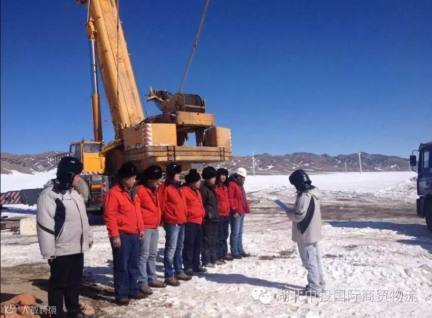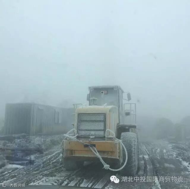 冬天气温低下,风场内出现凝冻;在恶劣的气候条件下,我们征询业主的意见后,使用应急天气运输方案进行工作中。