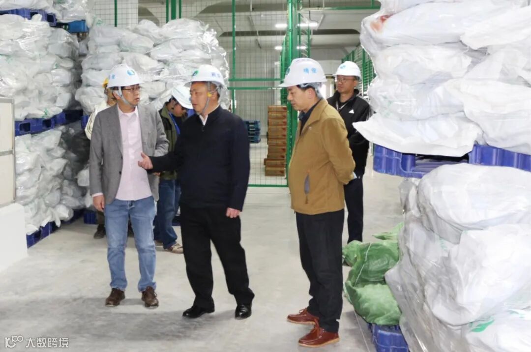 调研团一行前往腾俊国际陆港冷链仓储中心参观。在国家综合货运枢纽补链强链项目支持下,腾俊国际陆港冷链仓储中心已投入试运营,可满足生鲜、水果、蔬菜、花卉、肉类冻品等各类货物的储存要求。