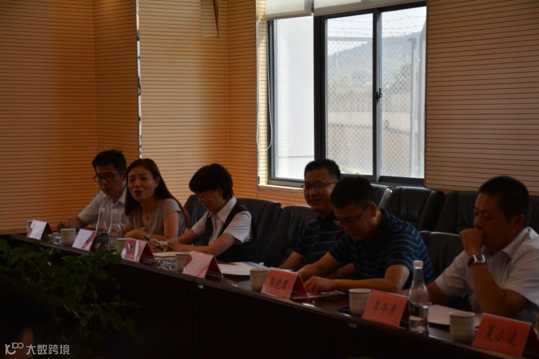 座谈会现场:昆明产投公司常务副总经理廖云江(右起第三位)、副总经理兼腾晋物流董事长匡良(右起第二位),腾晋物流总经理汤恒(右起第四位),副总经理米俊宇(右起第一位)、何立新(右起第五位)