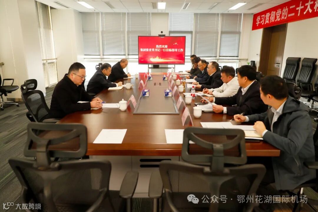 12月18日下午,为落实省纪委监委“一企一策”政治监督工作要求,湖北机场集团党委委员、纪委书记、监察专员张育英带队赴鄂州花湖国际机场调研督导航空货运枢纽建设情况并召开座谈会。湖北机场集团党委委员、副总经理,湖北国际物流机场有限公司党委书记、董事长罗国伟陪同并出席座谈会。