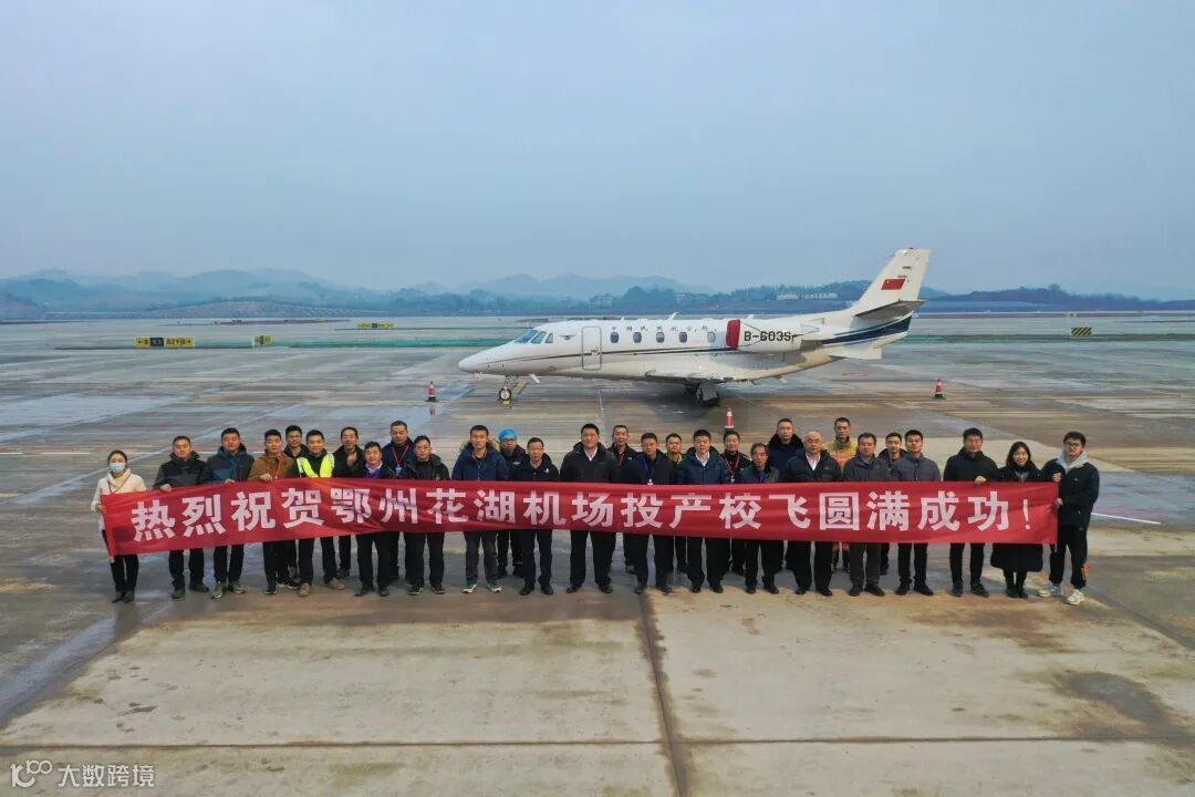 1月24日,随着“奖状”560飞机平稳降落在鄂州花湖机场西跑道,标志着鄂州花湖机场校飞科目全部完成。
