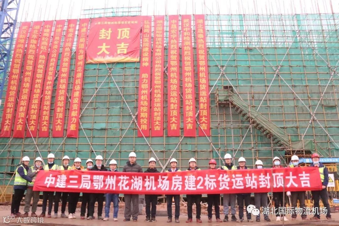 2月1日,鄂州花湖机场货运站及快件中心工程顺利完成土建结构封顶。至此,中建三局负责的房建2标段航站楼、货运站工程全部完成封顶,标志着鄂州花湖机场系列项目正朝年前节点目标发起冲刺。
