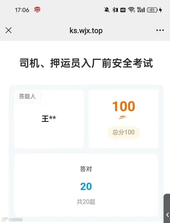 8、部分厂区还需司机、押运员入厂前安全考试。