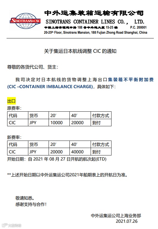 生效日期:2021年9月1日 (目的港卸船日)。适用于所有报价和柜型。