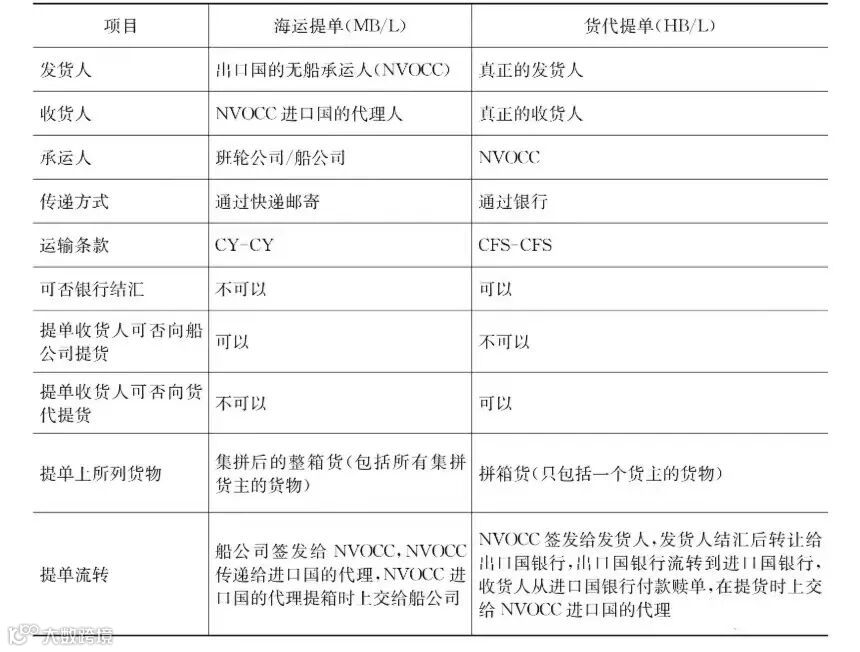 海运提单的英文为master(也可为ocean 或 liner)bill of loading,简称MB/L,由船公司签发。货代提单的英文为house(或NVOCC) bill of loading,简称HB/L,由货代公司签发