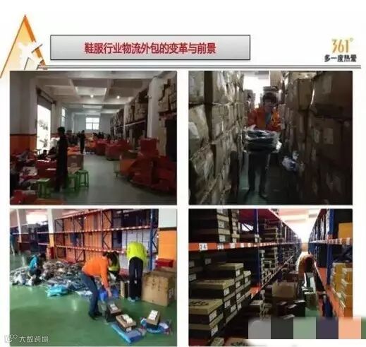 去年我们又增加了一些设备,就是用输送线来进行包装,效能就得到了比较大的提升。这张照片就是我们仓库在没有拣选之前非常干净的,右上角的照片是我们在做货物的存储,仓储的空间不高,我们把他用的还是挺可以的。但是这样的利用率高吗?像我三六一度现在自己电商的仓库大约近两万平方米,我的存储能力可以达到110万双件左右,这是我的仓库的存储能力。