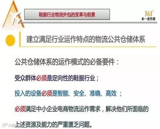 我抛出一个概念,叫建立满足行业运作特点的物流公共仓储体系。我为什么要提这个概念?其实我认为行业特点就是一个共性的,如果你的物流的要件都具备了这些情况的话,你的共性做到了,你的适合度高了,你的运营的可行性就增强了,这种趋势就存在了。