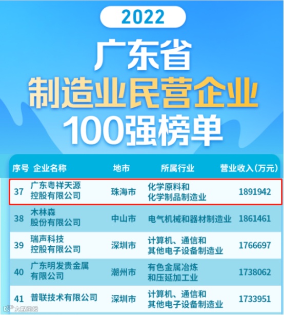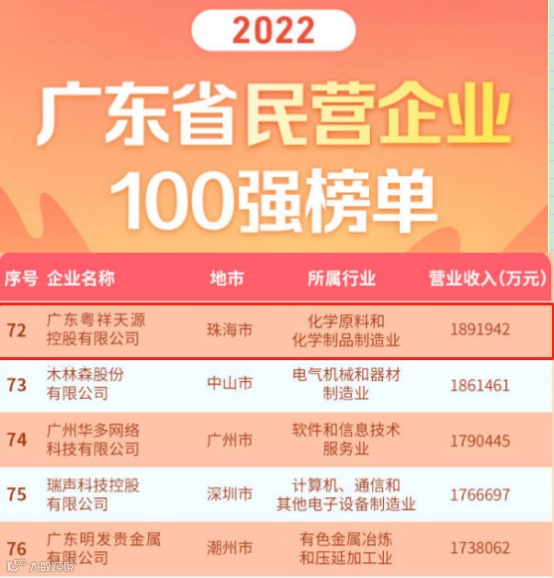 据悉,2022年广东省工商联继续开展“广东省民营企业100强”调研排序工作,由企业自愿申报并以2021年企业营业收入为基本标准,以企业会计年表为依据,经有关部门审核排序,产生了“2022广东省民营企业100强”。