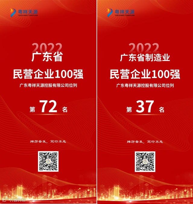 “2022广东省民营企业100强”榜单于12月14日在广州发布,广东粤祥天源控股有限公司保持雄厚的实力基础分别入围“2022广东省民营企业100强”和“2022广东省制造业民营企业100强”,位居“民营企业100强”榜单中第72名、“制造业民营企业100强”榜单中第37名!