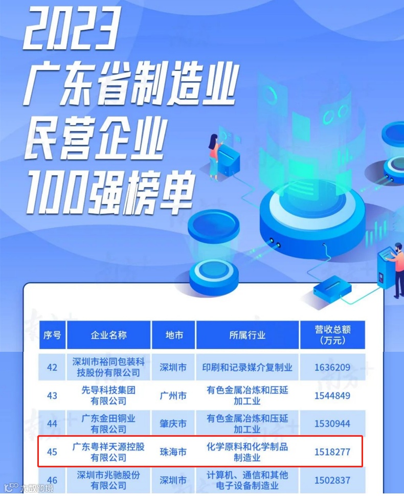 全球粤商、世界湾区、共享未来。9月22日,2023世界粤商大会正式发布“2023广东省民营企业100强”、“2023广东省制造业民营企业100强”、“2023广东省服务业民营企业50强”榜单。广东粤祥天源控股有限公司再次入选,分别位列“2023广东省民营企业100强”第81位、“2023广东省制造业民营企业100强”第45位。