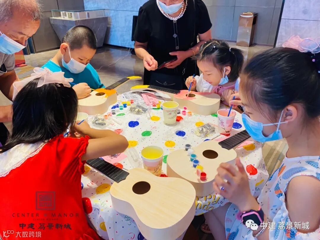 活动当天人气爆棚,盛况空前、新老业主、城市层峰人士循光相聚。上午尤克里里彩绘DIY,诗意栖息七彩童年,守护最好的孩子们。