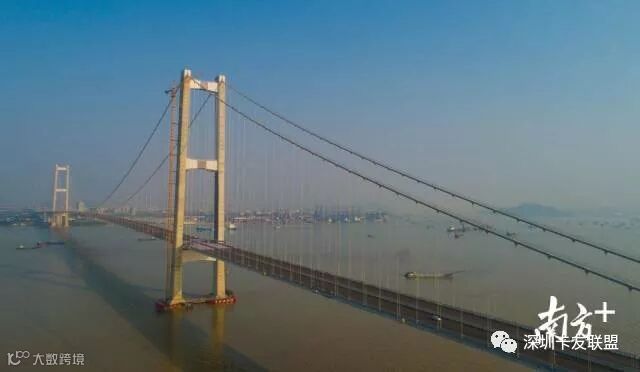 虎门二桥全长12.89公里,建成通车后,从广州南部到东莞的路程可缩短10公里,比现在缩短约半小时车程,将大大缓解珠江口东西两岸的繁忙交通,为粤港澳大湾区互联互通打通新的动脉,对于促进区域间人流、物流等经济发展要素的快速流动和珠三角地区完善交通体系意义深远。