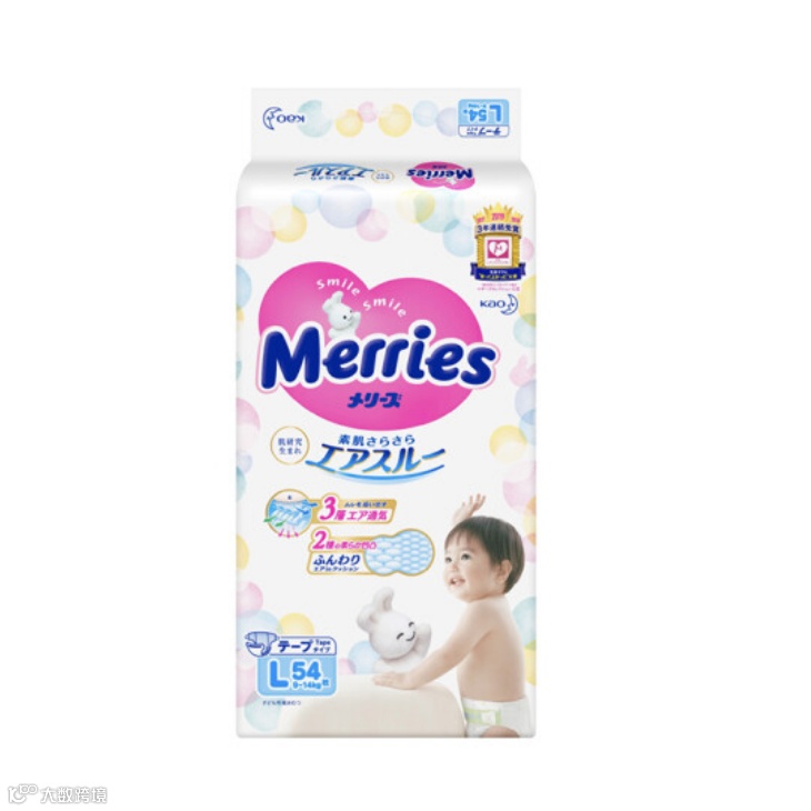 基础款商品:花王妙而舒Merries(日本进口)纸尿裤L54片(9-14kg)大号尿不湿纸尿片柔软透气超大吸收*1份