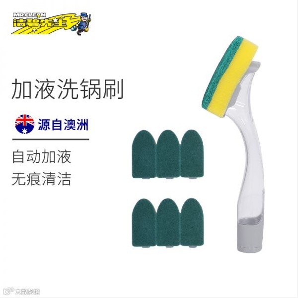 升级款商品:Mr clean加液洗锅刷刷锅神器+海绵替换头6个*2套