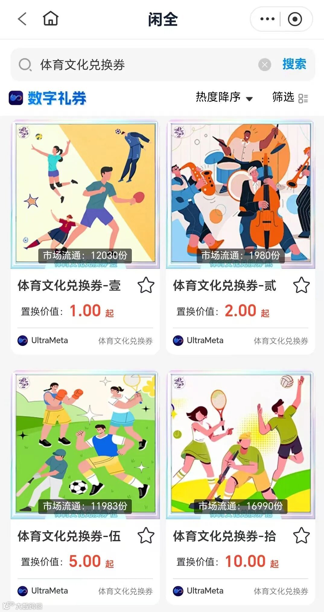 体育文化兑换券拥有权益凭证属性,持有用户可凭此参加平台官方推出的各类权益福利活动,而且还支持用户之间在闲全平台进行自由置换。