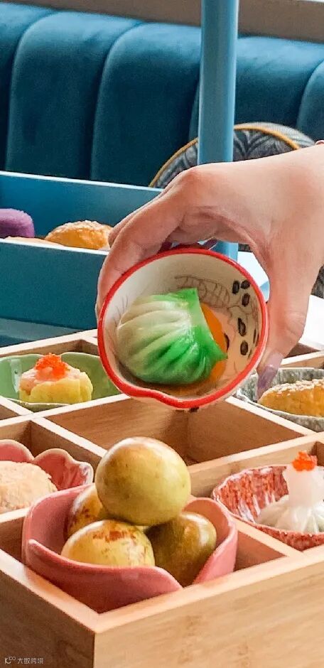 首创燕窝拎包酥、鲜虾蟹籽烧卖皇、传统老街红糖糕...十分具有中式创意情怀!再搭配小蚕豆、大甜枣、还有风味甜蜜蜜的杨枝甘露!一道道精致的点心,一个个用心起的名字,这是属于中国的饮食美学!
