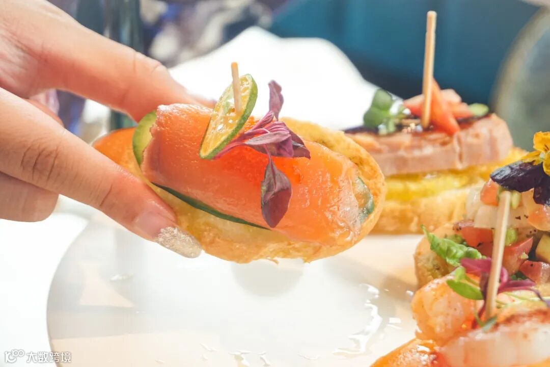 作为受尽追捧的低脂高蛋白食物,三文鱼是我们这群轻食党永远滴神~烟熏做法带出浓烈的香味,又保留了鱼肉本身的鲜美。中间藏着的青瓜,清新爽口,好感度倍增。