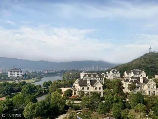 从酒店高处望去,眼前的别墅被大片绿化簇拥,远处群山连绵,倒映在江面实在太美,随便拍张风景照都是度假感满分!