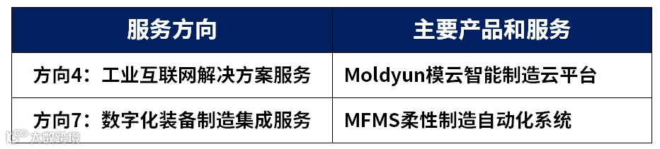 涉及数字化装备制造集成服务、智能制造系统解决方案服务、人工智能集成服务、新一代信息通信技术集成服务和金融服务等。