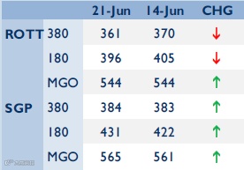 尽管各个大小的船型成交表现不均匀,这周整体租金水平显示出市场的活跃度有所上升。2800TEU船型一直供不应求,但2500TEU船型却在苦苦挣扎。3500TEU船型的需求相对较少,但市场上仍有大量的小巴拿马和超巴拿马询盘。值得注意的是,8000TEU船型提前开始进行交船位置的讨论,航线已经在准备秋季的部署。