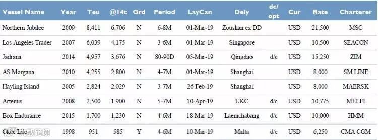 随着8500 TEU船型询盘的增加,上周市场让人感到有一点繁忙。8500 TEU船型的市场敏感度很高,租金在上周攀升到超过20000美金/天的水平。一部分原因是各个班轮公司希望在改装脱硫塔之前,拥有更多8500 TEU船型的运力。这部分租金的变化,目前还没有影响到小一点的超巴拿马船型。但是如果增加运力的意愿增强,可能会使市场在未来几周有进一步的攀升。