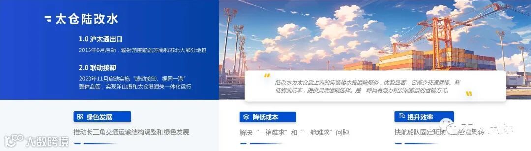 沪太通简介顾名思义是上海与太仓连线,是太仓三期码头正和码头和上海洋山港联动的一种操作模式,可以认为是上海洋山港的补充码头,出口集装箱进了太仓港由上海港务集团运营的太仓快航直接接驳洋山。(但目前只能操作普通货物,不能操作特种柜及危险品。)沪太通和内支驳船不同,可以理解为更经济的陆运改水运的模式。