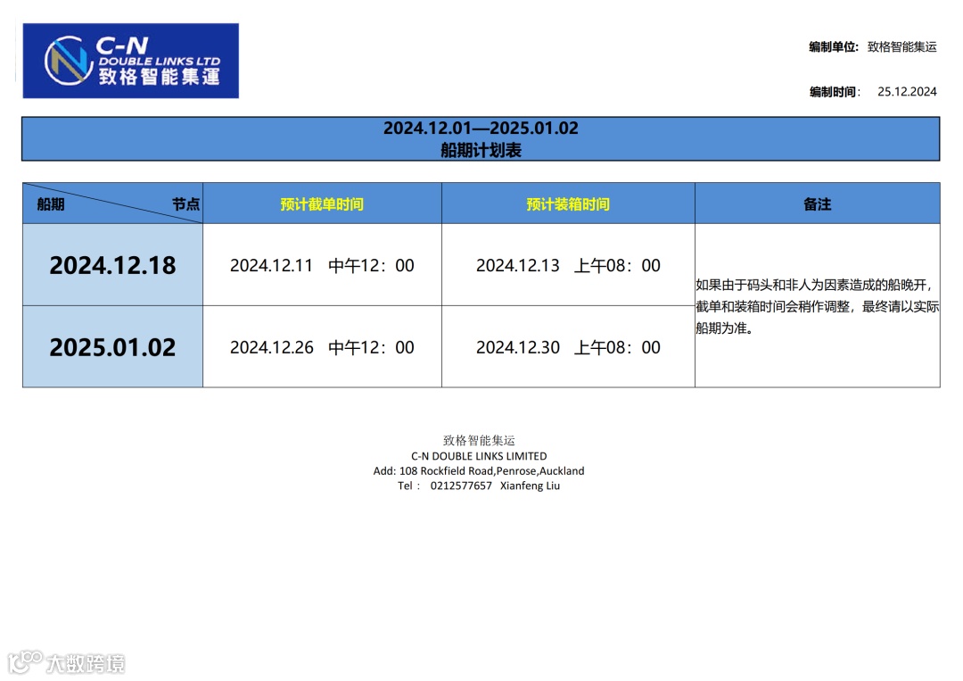 导读:此船期表仅供参考,最终开船和截仓时间以客服通知为准。