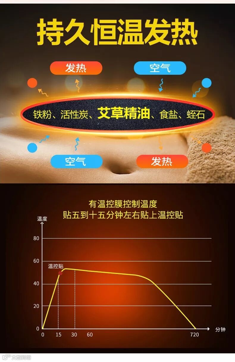 传统的暖宫贴,发热不均匀导致热力无法发挥,且不持久、不透气,长时间使用会皮肤会觉得很干、不舒服。