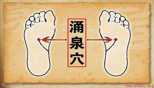 你只需晚上睡觉前,在双脚的涌泉穴上,