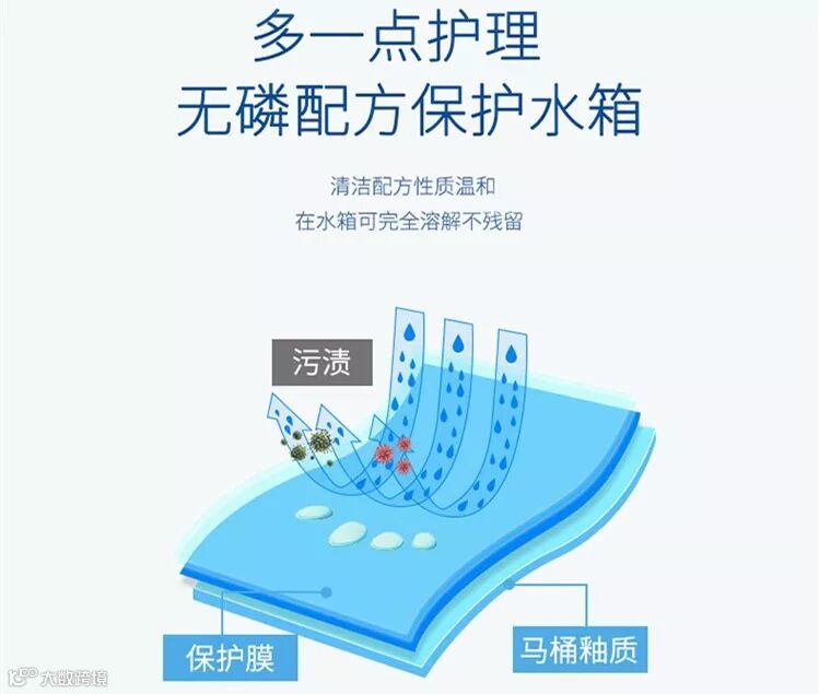 温和的清洁材质不仅能够完全溶解,而且还能在马桶和水箱上形成一层保护膜。