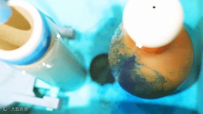放入后,就能看到蓝色的清洁液体从微孔中渗透出来,溶解的也很彻底,很快就扩散到了整个水面。
