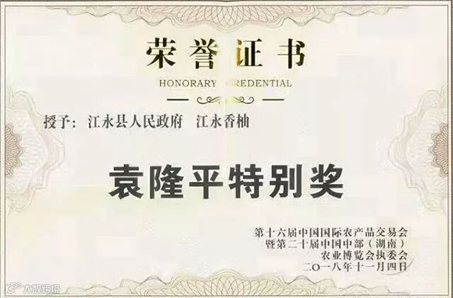 江永香柚国家农产品地理标志产品之一,湖南省首届十大农业品牌产品之一。