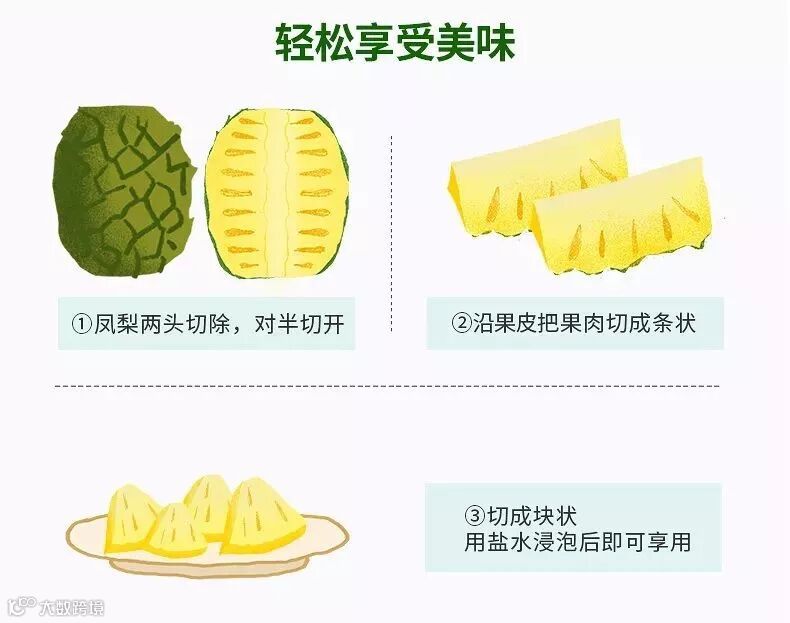 3、食用方式:凤梨削皮后直接食用,菠萝削皮后需要盐水浸泡方可食用。