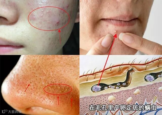 这些螨虫密密麻麻,扎堆在毛孔