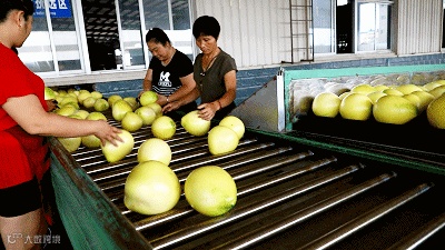 采摘后,会对柚子经过多次人工筛选,单个重量在2斤以上,避免太小口感会偏酸,太大果肉容易干水木质化。