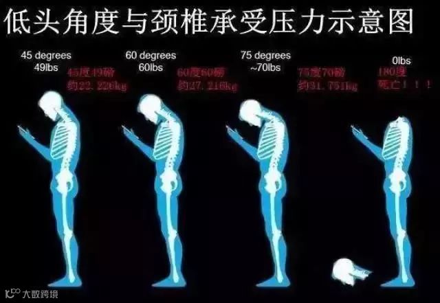 “低头族”是最大的一个群体,公交站台、地铁、电梯、路上,每个人都低头盯手机,要知道低头玩手机=脖子扛50颈大米,长期低头对颈椎造成的伤害非常严重。