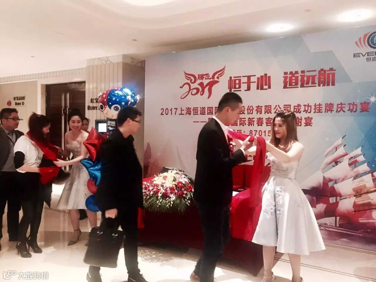 2017年1月15日恒道国际在上海小南国酒店成功举办了上市庆典暨新春答谢宴。行业领导,合作伙伴及客户朋友悉数到场,见证了恒道人举杯同庆的重要时刻。各位领导为恒道送来了祝福,恒道员工也为大家准备了缤彩纷呈的节目,整场晚宴都沐浴在欢乐的海洋之中。