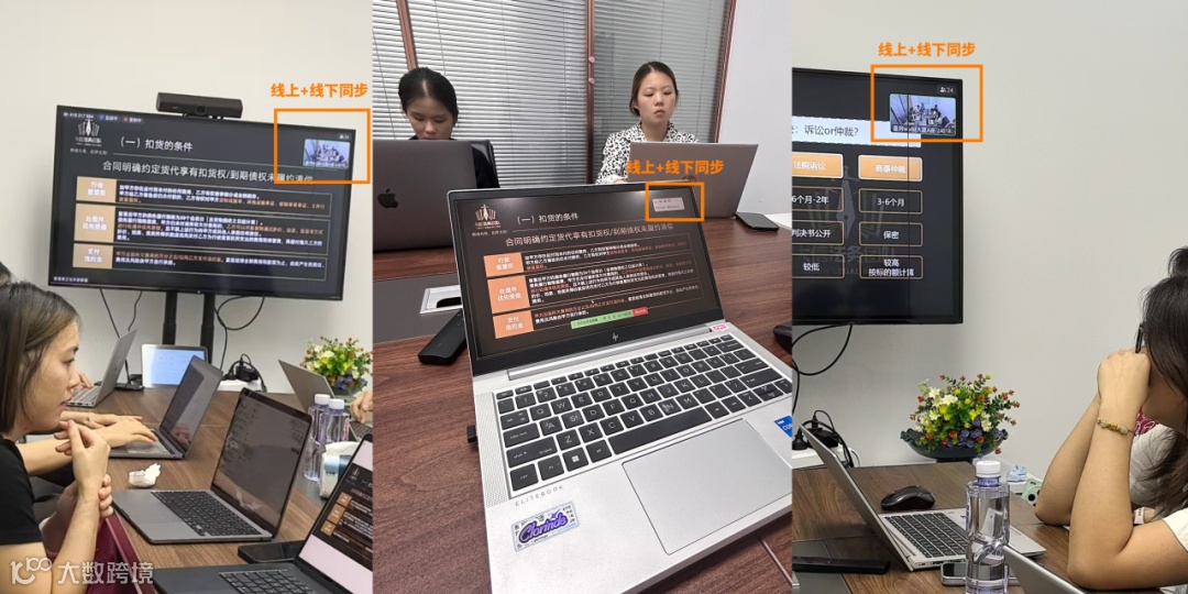 而且除了邮差小马深圳公司的负责人及同事在场听讲外,还以网络连线直播形式进行,包含邮差小马不同区域分公司的各个同事,共同在线上听我们大信讲师进行法律宣讲。