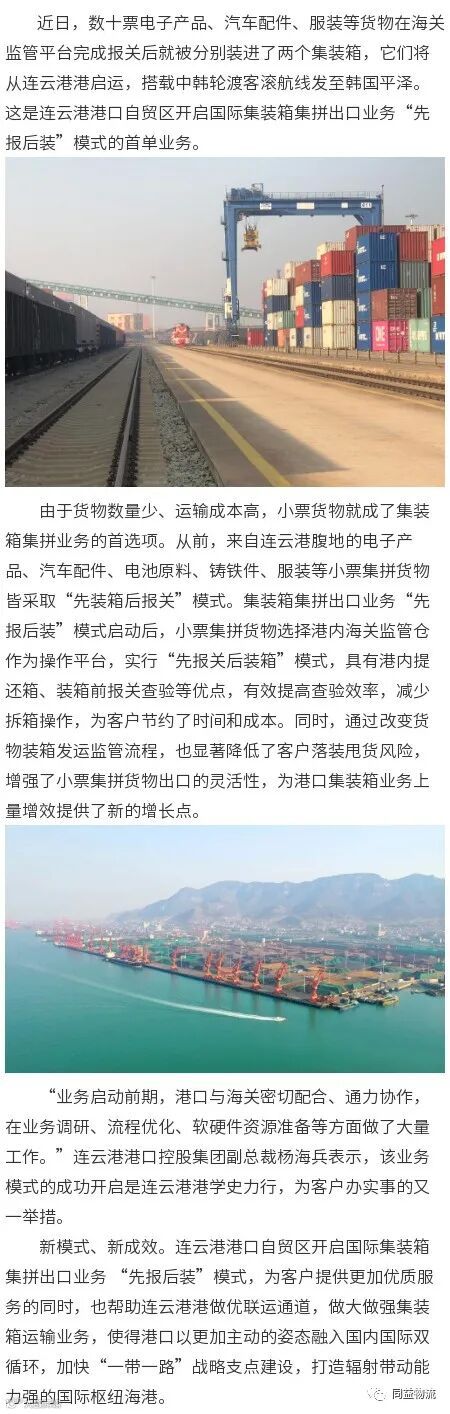 【头条】连云港港口自贸区开启国际集装箱集拼出口业务 “先报后装”模式