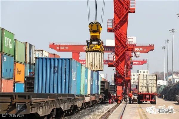 2021年3月2日,连云港中哈物流基地,大型机械正在向列车上装载集装箱。今年以来,连云港中哈物流基地(公司)以全程物流链、贸运一体化为导向,续优化“保税+出口”混拼、国际班列过境集装箱“船车(站)直取”零等待等业务模式,在智能化的引领下,国际班列换装作业效率有效提高,截至2月底,共开行国际班列82列,3356车,主要是家居用品、建材产品、二手汽车零配件等货物。
