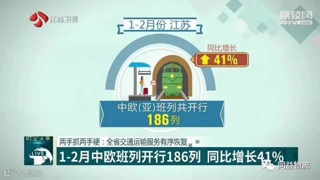 自新冠肺炎疫情爆发以来,江苏国际海运、空运受到一定影响,中欧班列成为国际物流运输的“黄金通道”。苏州班列已为近400家生产制造企业提供班列出口服务;南京市全力推进南京班列稳定开行,前两个月班列数量同比增长超过60%;连云港港充分发挥海铁联运优势,相继开通国际国内通道,1-2月连云港中欧班列开行已顺利突破140列。