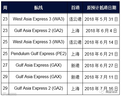 【头条】APL亚洲市场(中东海湾)- 近期停航通知