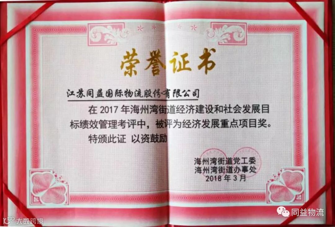 本次2017年度海州湾街道经济建设和社会发展项目考评由海州湾街道党工委和海州湾街道办事处主办,经过前期严格筛选、综合考评等程序,同益物流及多家优秀企业单位获得提名及表彰。