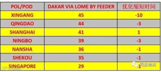 除此以外,MSC还更新了塞内加尔DAKAR港的航运路线,从以往通过VALENCIA中转优化为LOME中转,从而大大提高了全程的转运时间。